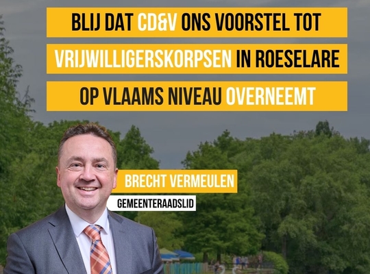 Nog geen twee maand geleden diende N-VA bij monde van fractieleider Brecht Vermeulen op de gemeenteraad het voorstel in om in Roeselare een lokaal vrijwilligerskorps op te richten. Goed geargumenteerd en met meer dan enkel aandacht voor enkele wijken. Het punt werd - mits een amendement - ook goedgekeurd door alle partijen.